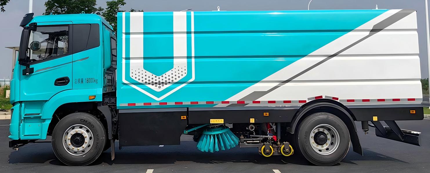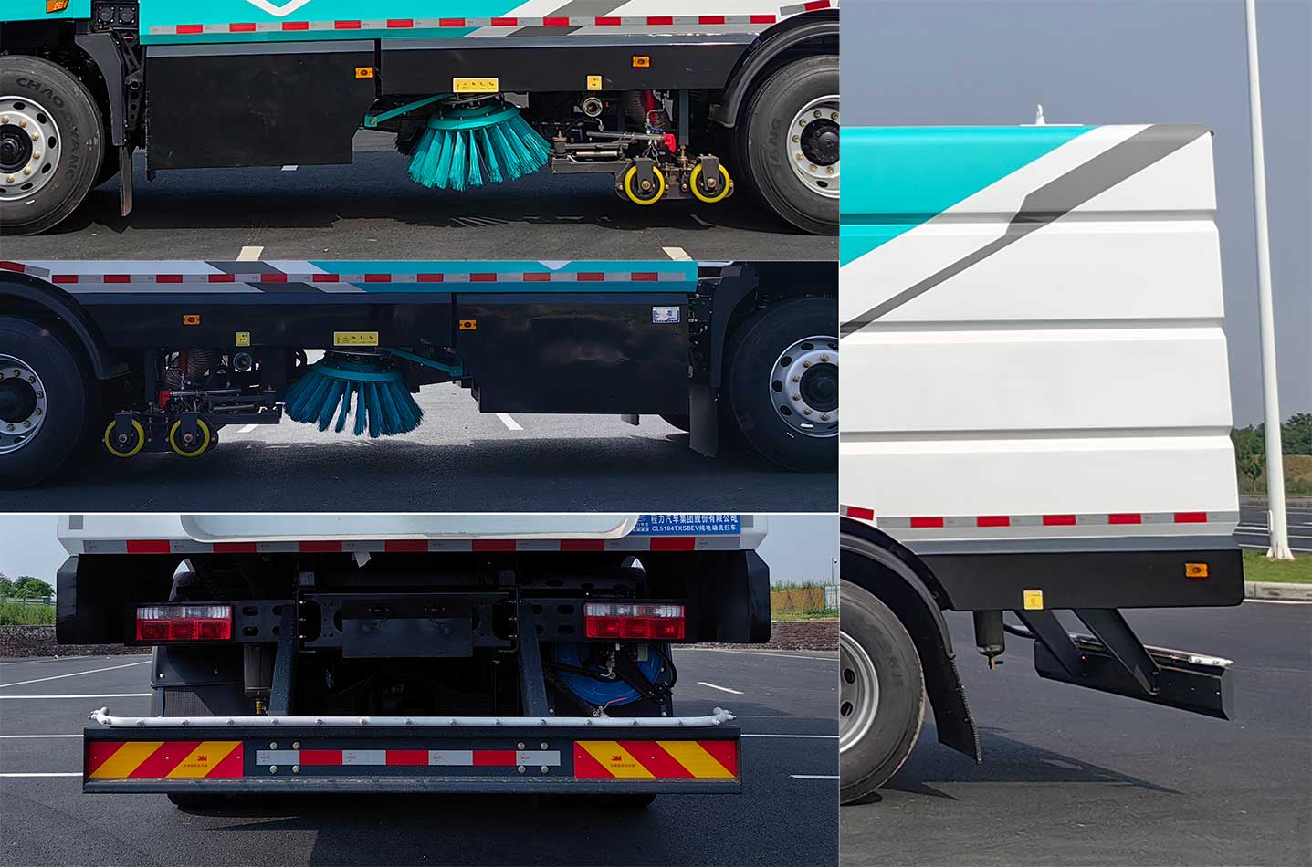 一、底盤配置: 采用CL1181JBEV車身,配置玉柴TZ366XS50E發動機200/272馬力,國六排放標準,軸距4800(mm),整備質量11.95噸,額定載質量5.92噸,五擋變速箱,帶動力轉向,帶原廠空調,該款純電動洗掃車是我公司開發的新一代環衛產品,采用CL1181JBEV型二類載貨汽車純電動底盤改裝。具有路面洗掃、清掃、清洗,可清洗路沿,路緣石立面、前角噴、后噴霧,高壓噴槍可清洗路標、廣告牌等功能。選裝低壓灑水系統時,可進行低壓前對沖或鴨嘴沖洗。該車上黃牌,城區道路請注意限行標識。