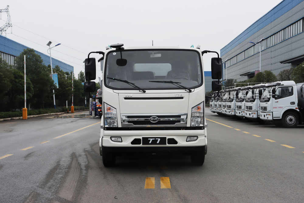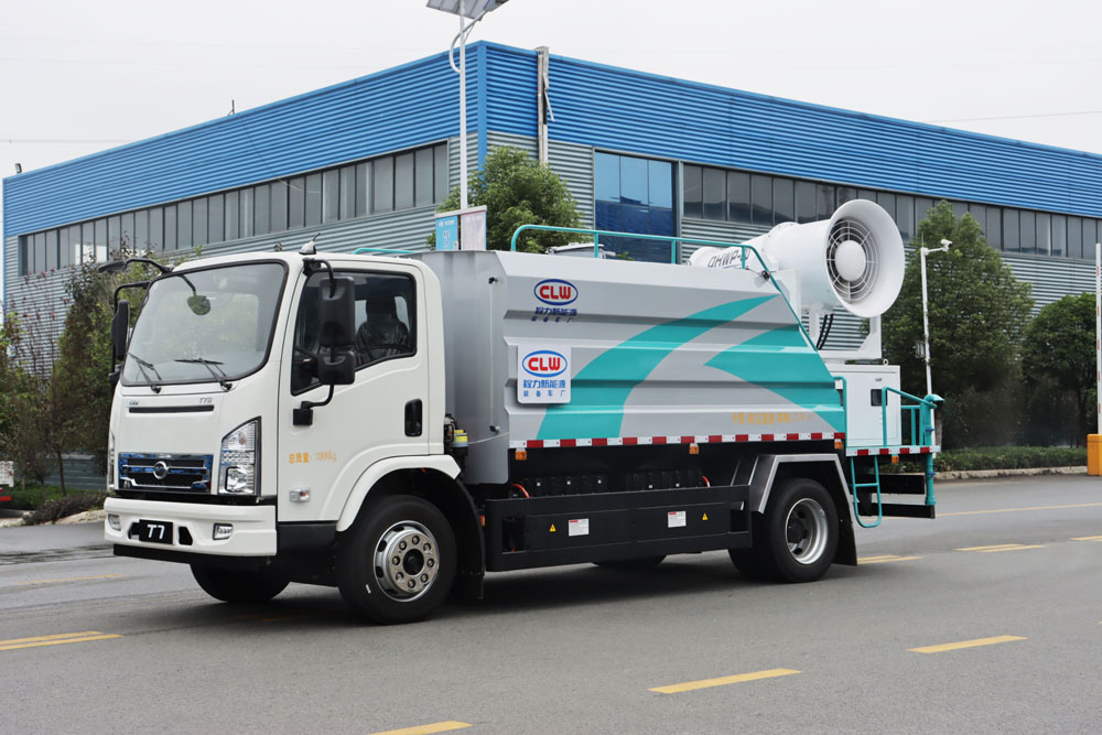 四、其他說明: 比亞迪T7B純電動(dòng)多功能抑塵車是在純電動(dòng)二類底盤的基礎(chǔ)上,加裝低壓沖洗、灑水系統(tǒng)、霧炮機(jī)組,由機(jī)械、液壓(氣路)、電器三部分合為一體的專用灑水作業(yè)車。 采用自吸式雙級(jí)離心泵,效率高、灑水寬度大、水槍射程遠(yuǎn),低壓水泵由底盤變速器取力器通過傳動(dòng)軸直接傳動(dòng)。霧炮機(jī)組由底盤電池帶動(dòng)霧炮風(fēng)扇電機(jī)、不銹鋼多級(jí)離心泵,進(jìn)行噴霧降塵工作。