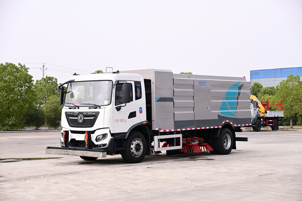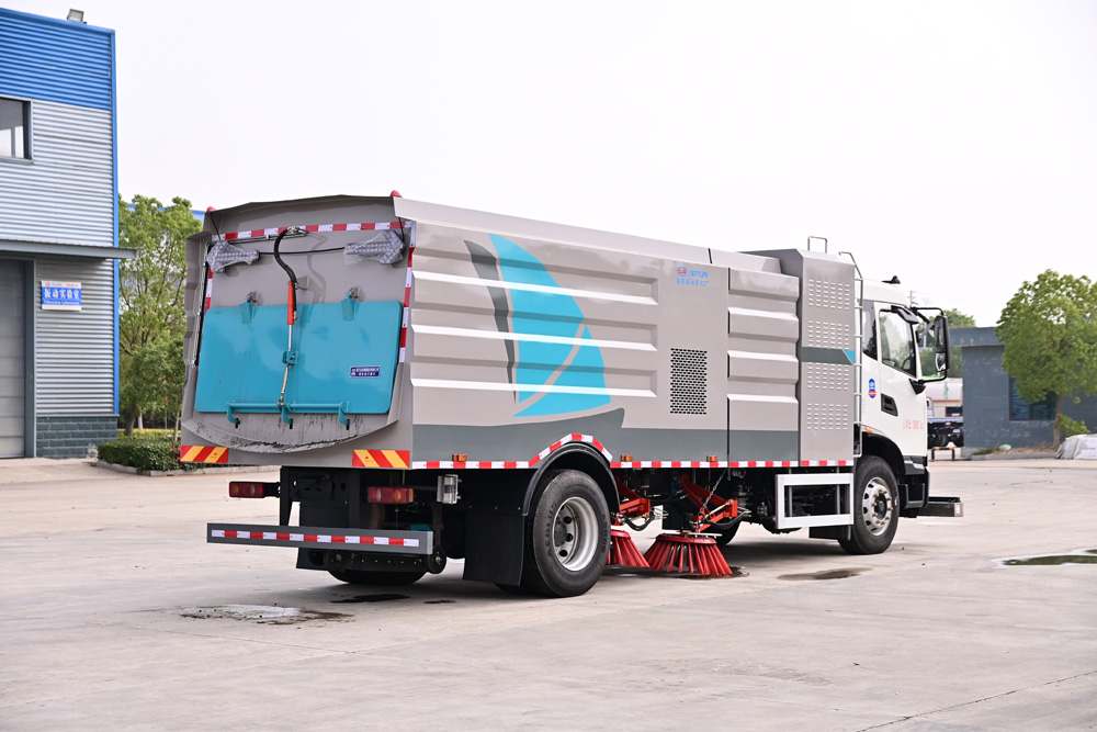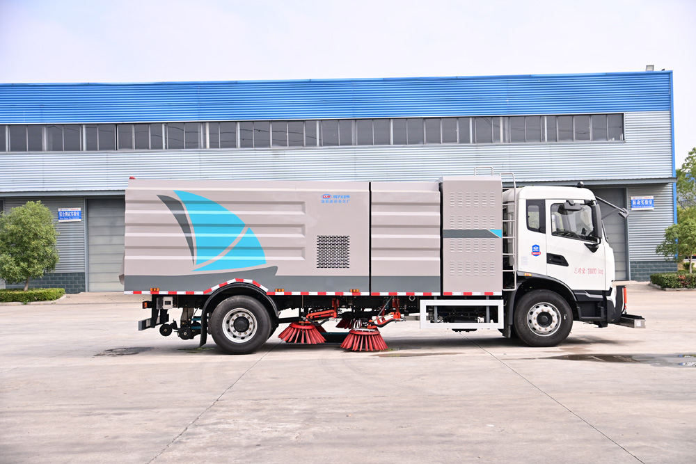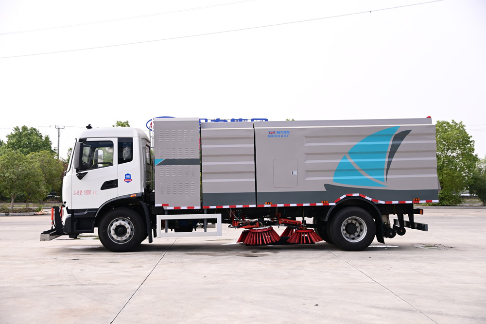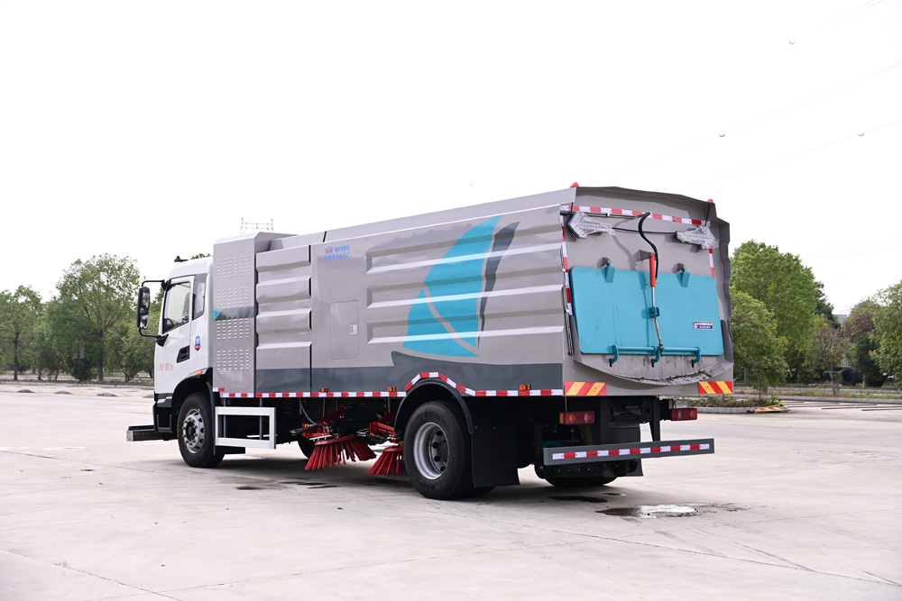 四、其他說(shuō)明: 1.采用吸掃混合的方式收集垃圾,濕式除塵、電液控制,液壓傾翻卸料的作業(yè)方式對(duì)路面進(jìn)行清掃作業(yè)。 2. 采用永磁同步電機(jī)專門驅(qū)動(dòng)風(fēng)機(jī)和液壓系統(tǒng),保證行駛過(guò)程中能繼續(xù)工作,保證清掃過(guò)程的連續(xù)性。