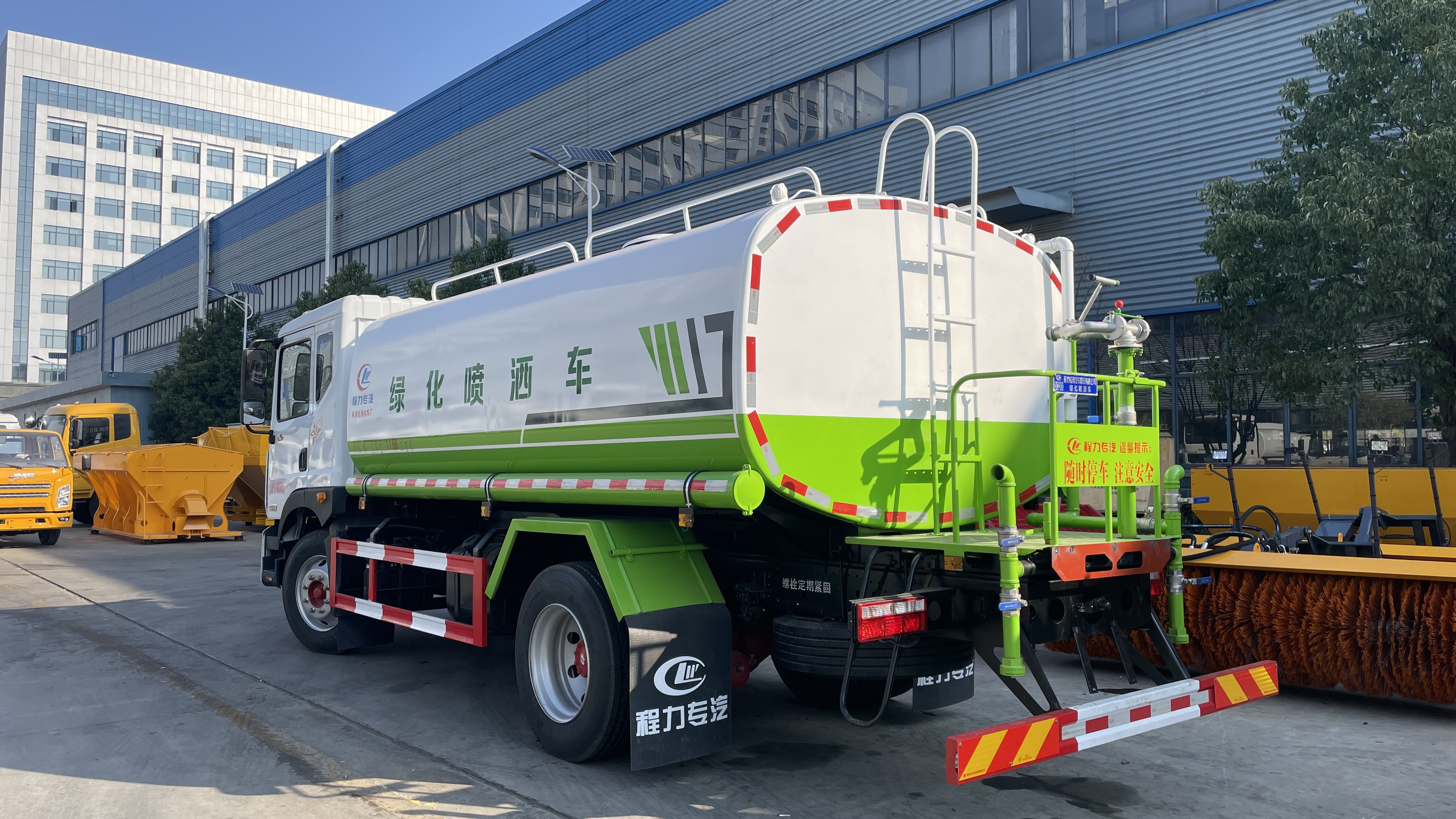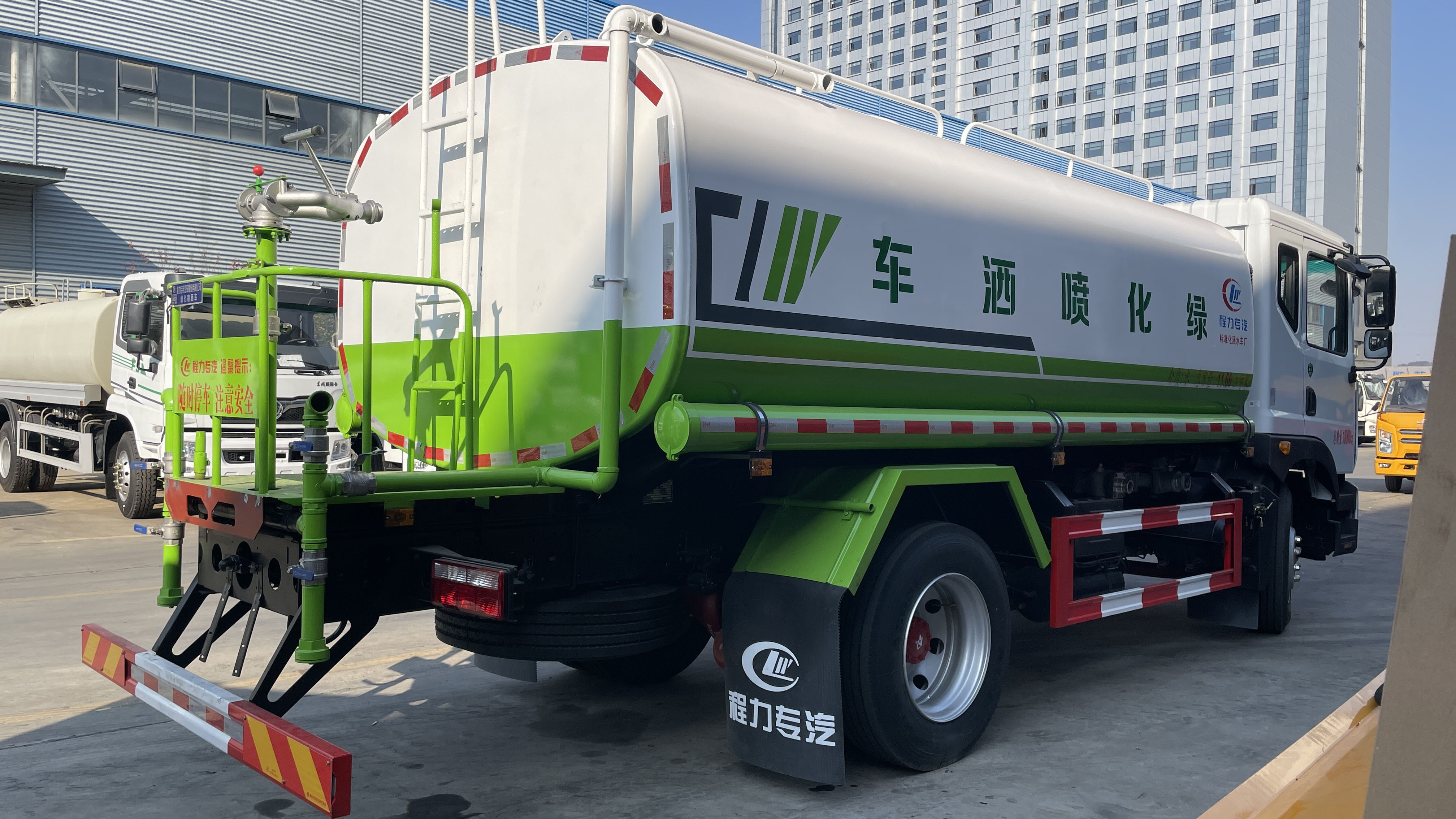 - 大容量:罐體有效容積可達(dá) 11.66 立方米,能夠儲(chǔ)存大量的水,減少了加水次數(shù),提高了灑水作業(yè)的效率,特別適合大面積道路沖洗、綠化灌溉等長(zhǎng)時(shí)間、大面積的灑水作業(yè)需求.