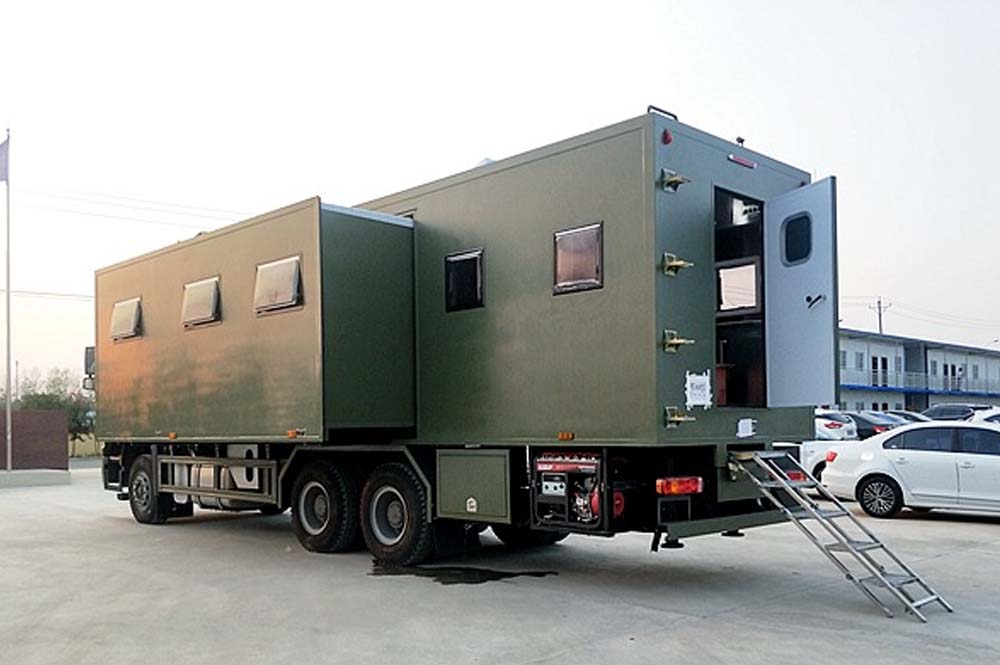 主要專用裝置發(fā)電機(jī),折香床鋪等,選裝配置衛(wèi)浴間、凈水箱、外掛式。空調(diào)、衛(wèi)星天線、吸頂電視、換氣扇、車(chē)廂左、右可選裝擴(kuò)展機(jī)構(gòu)箱體、車(chē)廂左、右兩側(cè)、后部增加或封閉窗戶、車(chē)門(mén)、車(chē)輛顏色可選裝裝有具有衛(wèi)星定位的行車(chē)記錄儀等,不擴(kuò)展可供8-12住宿,擴(kuò)展后可供8-28人住宿。(可根據(jù)客戶要求改裝)